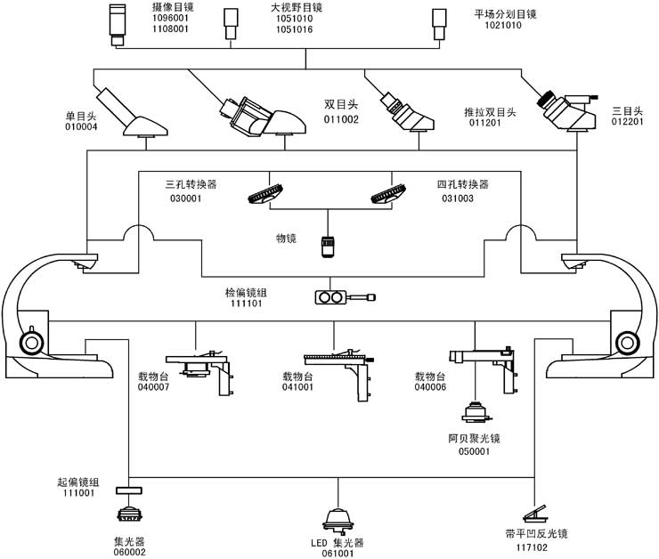 L1050系列雙目生物顯微鏡系統(tǒng)圖解: