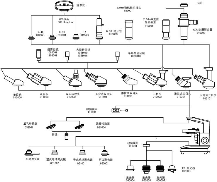 L1100系列雙目生物顯微鏡選配件: 名稱 | 類別/技術(shù)參數(shù) | 編號 | 目鏡 | 10X分劃目鏡,格值0.1mm/格 | 1021010 | 物鏡 | 半平場消色差 SP 4X/0.10 | 2030104 | 半平場消色差 SP 10X/0.25 | 2030110 | 半平場消色差 SP 20X/0.40 | 2030120 | 半平場消色差 SP 40X/0.65(彈簧) | 2030140 | 半平場消色差 SP 100X/1.25(彈簧,油) | 2030111 | 目鏡筒 | 單目鏡(傾斜30˚) | 010006 | 雙目鏡(推拉式)(傾斜45˚) | 011201 | 三目鏡(推拉式)(傾斜45˚) | 012201 | 三目鏡(傾斜30˚) | 012003 | 雙人示教鏡(傾斜30˚) | 013002 | 轉(zhuǎn)換器 | 五孔(外向式滾珠內(nèi)定位) | 032001 | 濾色片 | 綠濾色片 | 115002 | 黃濾色片 | 115003 | 光源 | LED集光器 | 高亮白光 | 073006 | 聚光鏡 | 暗場 | 干式 | 051001 | 濕式 | 051002 | 相襯裝置 | 目鏡 | 對中望遠(yuǎn)鏡 | 110001 | 物鏡 | 相襯消色差 10X/0.25 PHP | 2410110 | 相襯消色差 20X/0.40 PHP(彈簧) | 2410120 | 相襯消色差 40X/0.65 PHP(彈簧) | 2410140 | 相襯消色差 100X/1.25 PHP(彈簧,油) | 2410111 | 轉(zhuǎn)盤式相襯聚光鏡(PH-Ⅰ) | 052001 | 轉(zhuǎn)盤式相襯聚光鏡(PH-Ⅱ) | 052004 | 插板式相襯聚光鏡 | 052002 | 拉板式相襯聚光鏡 | 052003 | 無限遠(yuǎn)光學(xué)系統(tǒng) | 目鏡筒 | 雙目鏡(傾斜30˚) | 011101 | 三目鏡(傾斜30˚ ) | 012101 | 目鏡 | 對中望遠(yuǎn)鏡 | 110002 | 物鏡 | 無限遠(yuǎn)場消色差 4X/0.10 | 2080104 | 無限遠(yuǎn)場消色差 10X/0.25 | 2080110 | 無限遠(yuǎn)場消色差 40X/0.65(彈簧) | 2080140 | 無限遠(yuǎn)場消色差 100X/1.25(彈簧,油) | 2080111 | 無限遠(yuǎn)相襯消色差 10X/0.25 PHP | 2480110 | 無限遠(yuǎn)相襯消色差 20X/0.40 PHP(彈簧) | 2480120 | 無限遠(yuǎn)相襯消色差 40X/0.65 PHP(彈簧) | 2480140 | 無限遠(yuǎn)相襯消色差 100X/1.25 PHP(彈簧,油) | 2480111 | CCD接頭 | 0.4X | 810001 | 0.5X | 810004 | 1X | 810002 | 0.5X帶分劃尺,格值0.1mm/格 | 810003 | 攝像儀 | DV-1(帶USB和Video輸出) | 800001 | DV-2(帶USB輸出) | 800003 | DV-3(帶Video輸出) | 800005 | 攝像目鏡 | USB輸出 | 1096001 | VIDEO輸出 | 1108001 | 數(shù)碼相機(jī)接頭 | CANON數(shù)碼相機(jī)接頭(A610,A620,A630,A640) | 820001 | 攝影裝置 | 2.5X/4X變倍攝影裝置帶10X取景目鏡 | 840001 | 4X對焦攝影裝置 | 840002 | MD卡環(huán) | 840003 | PK卡環(huán) | 840004 | 簡易偏光系統(tǒng) | 起偏器(可360˚旋轉(zhuǎn)) | 111001 | 檢偏器 | 111101 | 電源適配器 (LED適用) | 輸入:230V~50/60HZ 輸出:9V 500mA | 101001 | 輸入:110V~50/60HZ 輸出:9V 500mA | 101002 |
