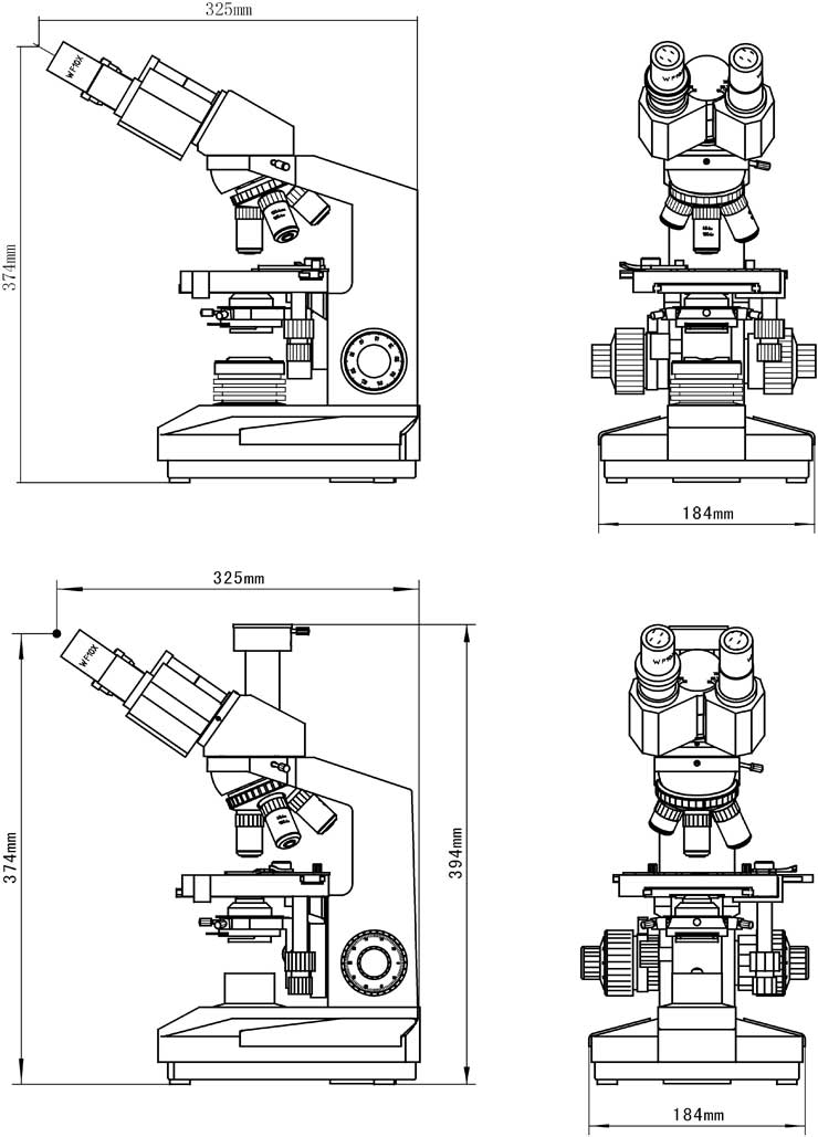 L1200系列生物顯微鏡外形尺寸: