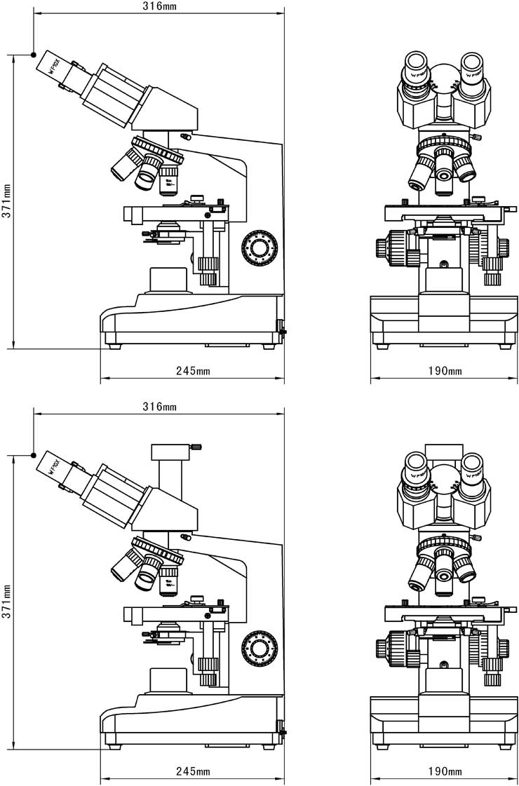 L1500系列生物顯微鏡外形尺寸:
