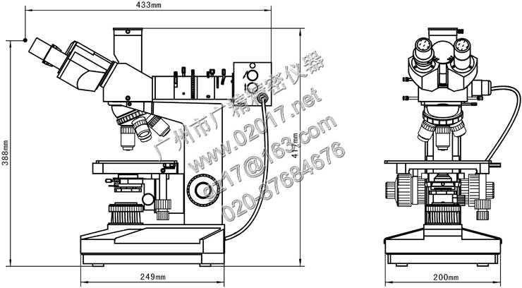 L2030系列透反射正置金相顯微鏡外形尺寸:
