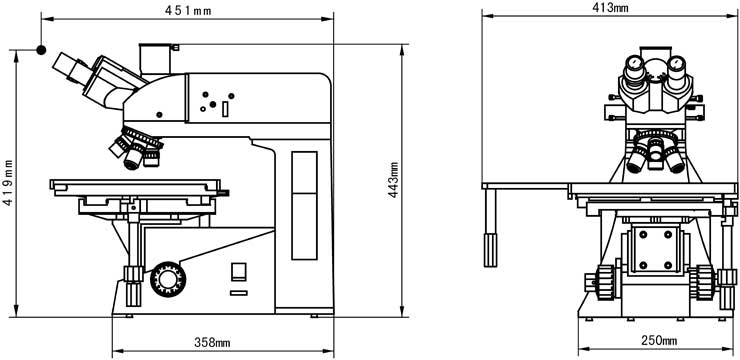 XJL-101系列正置金相顯微鏡外形尺寸: